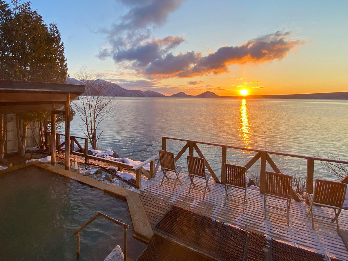 支笏湖を望む湖側の和室や和洋室を中心とした、落ち着いた設えと静けさが魅力の宿。客室内にバスを備えるお部屋はごく一部ですが、館内には足元湧出の天然露天風呂、展望露天、内湯、貸切風呂を完備。好きな時間に湯めぐりを楽しめます。湖の碧と山の稜線に包まれ、四季の移ろいを感じながら心ゆくまでくつろげる滞在を提供 |