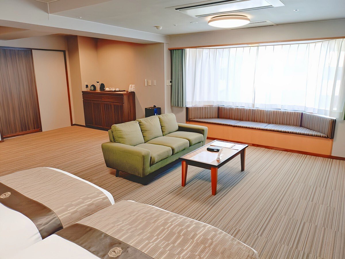 E 湖側デラックス和洋室(72u/定員4名)〈ウイングス館〉 想定: 広さを優先し、器具置きや見守りスペースをしっかり確保したい方向けです 利点: 約72uの広さがあり、家具を動かしてレイアウトを自由に調整しやすい設計です 注意点: 浴室が一般仕様の場合もあるため、セパレート可否や開口幅は事前確認がおすすめです