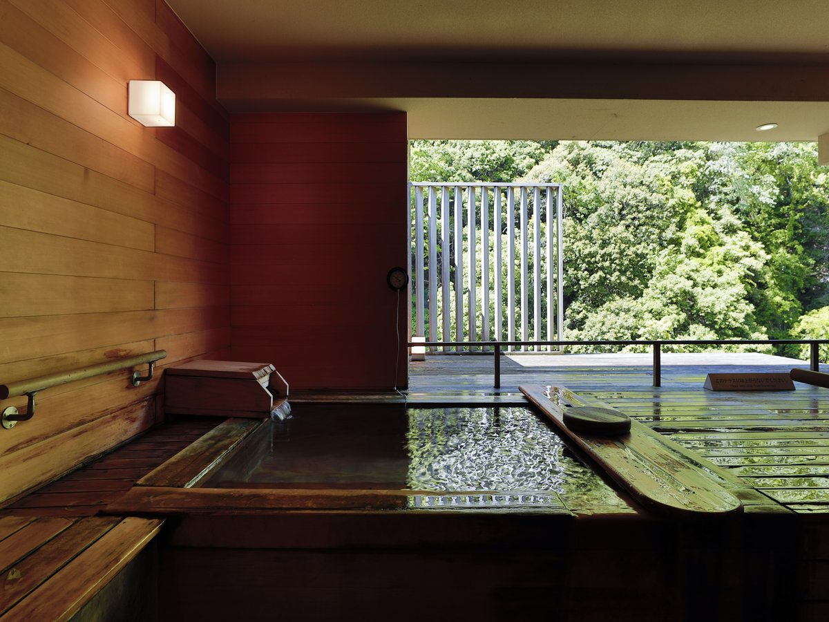 温泉(〇)・宿泊者限定※日帰りプラン利用時は入浴対応可 檜の香りがふわりと広がる湯船に身を沈めると、やわらかい木肌の温もりと高い保温性が、湯上がりまで心地よく包み込みます。客室は身体への負担を軽減しやすいバリアフリー対応の造りで、動線にも無理がありません。ご家族やパートナーと、プライベートにゆったりと湯時間を共有できる特別なひとときを |