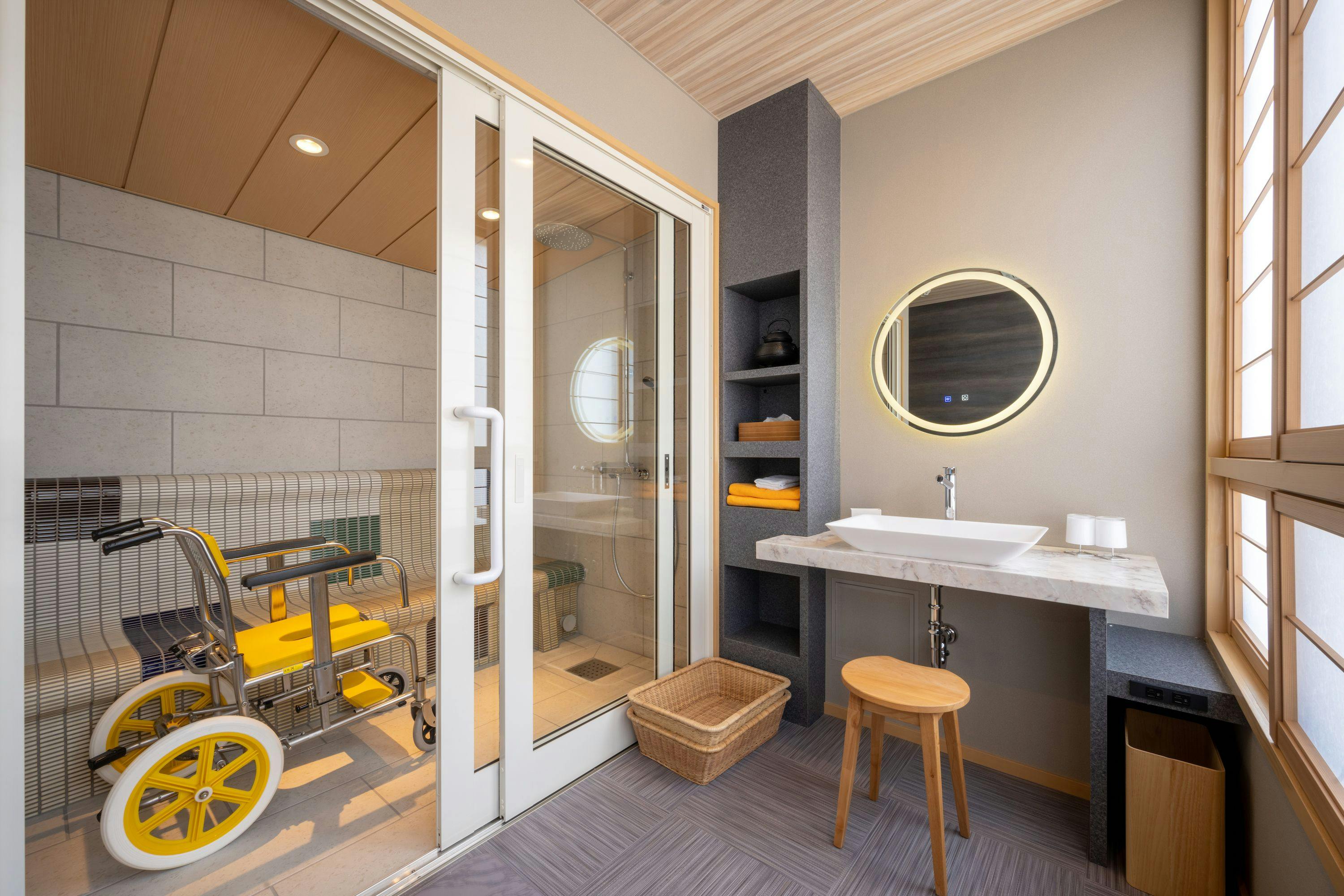 伝統的な和室を基本としながら、車いすでも快適に過ごせるバリアフリー特別室も用意しています。広めの出入口とゆとりある動線で、車いす移動やご家族での滞在にも対応。落ち着いた空間で、安心してゆったりとした滞在をお楽しみいただけます。 |